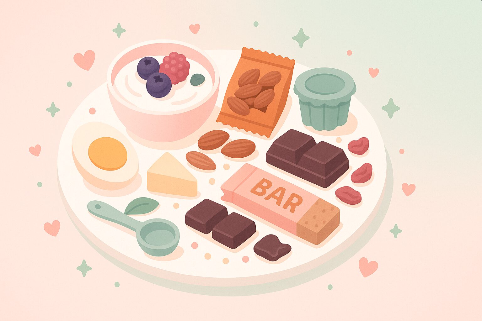 • プロテインバー(低糖質)— すき間時間にたんぱく質補給(1本約150kcal/糖質5〜10g)